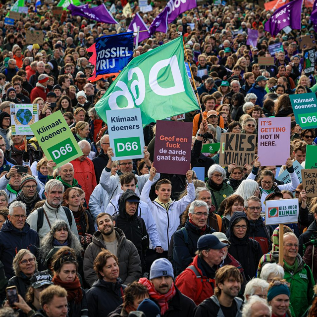 De Klimaatcrisis Coalitie roept het volgende kabinet op om eindelijk politieke moed te tonen door te kiezen voor mens en natuur, en de belangen van grote vervuilers niet langer boven de samenleving te stellen . "Onze eisen."