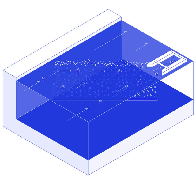 Een Bubble Barrier bestaat uit een bellenscherm, een opvangsysteem en een luchttoevoer. Het bellenscherm wordt gecreëerd door lucht door een geperforeerde buis te pompen die op de bodem van het kanaal ligt. Dit genereert een opwaartse stroming die plastic naar het oppervlak leidt. Door het bellenscherm diagonaal in de waterweg te plaatsen, duwt de natuurlijke stroming van het kanaal het plastic afval naar de zijkant en in het opvangsysteem. Het opvangsysteem kan gemakkelijk door de gemeente worden geleegd.