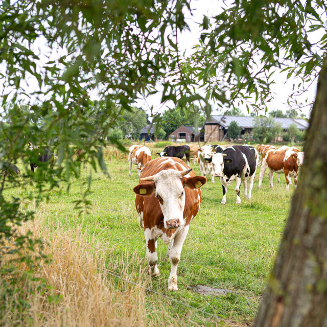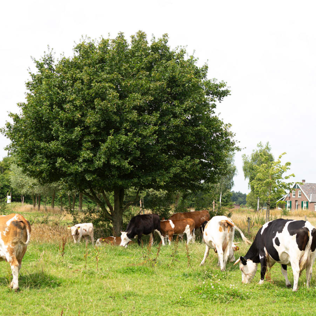 Op boerderij Ruimzicht van Jara en Gerjo groeien langs hun weilanden diverse bomen en struiken. Op warme dagen vinden hun koeien en kalfjes daar verkoeling in de schaduw. De boeren plaatsen dierenwelzijn centraal in hun bedrijfsvoering, en daar hoort een schaduwrijke wei bij. Extra voordeel: de begroeiing biedt naast verkoeling ook lekker eten voor de koeien.
