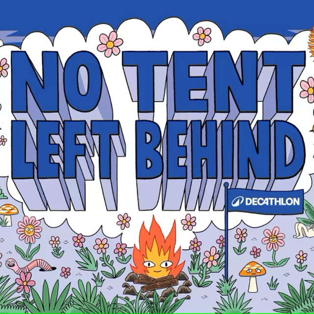 Decathlon en Kultlab zamelden deze zomer 150 achtergebleven tenten in na afloop van twee Nederlandse festivals. Festivalgangers werden tijdens deze “No tent left behind”-actie op de festivals zelf geïnformeerd. Alle ingeleverde kampeerproducten werden vervolgens gesorteerd en gelabeld. Tenten die niet werden ingeleverd maar achtergelaten op het festivalterrein, werden ook verzameld door een team van Decathlon medewerkers.