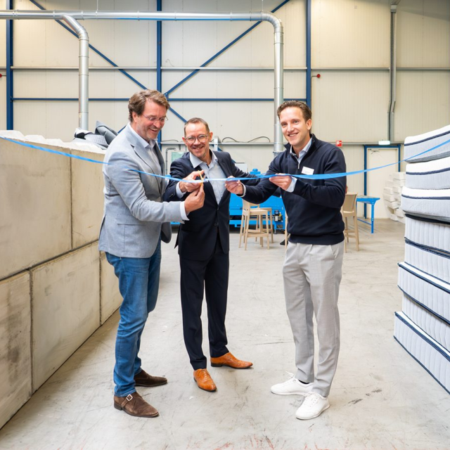 Op dinsdag 7 oktober heeft RetourMatras zijn disassemblage-locatie voor circulaire matrassen in Lelystad geopend. De techniek die op deze locatie wordt toegepast om matrassen te demonteren, is ontwikkeld door Koninklijke Auping en wordt nu overgedragen aan RetourMatras. Deze innovatieve technologie is daarmee toegankelijk voor de gehele beddenbranche om zo samen een belangrijke volgende stap in de circulaire transitie te kunnen zetten. De opening werd verricht door Loek Knijff, senior beleidsmedewerker van het Ministerie van Infrastructuur en Waterstaat en verantwoordelijk voor de wetgeving rond producentenverantwoordelijkhei