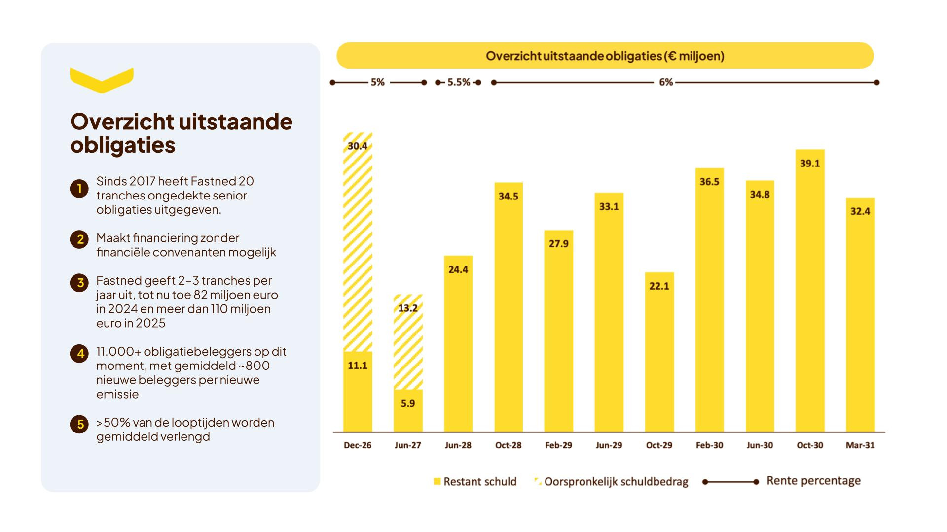 De obligatieronde, die op 10 maart 2026 werd afgesloten, is de twintigste tranche binnen het obligatieprogramma van Fastned. Van het totaalbedrag van 32,4 miljoen euro bestaat ongeveer 30 miljoen uit nieuwe investeringen. Ruim 2 miljoen euro werd ingebracht door bestaande beleggers die hun eerdere obligaties verlengden.