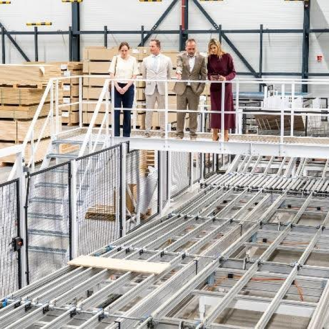 Bij Vepa komt alles samen: van grondstof tot nieuw product. Als onderdeel van de Fair Furniture Group ontwikkelt en produceert het bedrijf duurzaam kantoormeubilair en ondersteunt het organisaties bij hun circulaire inrichting. Steeds vaker worden meubels opgeknapt voor een tweede leven. Tijdens de rondleiding kreeg Koningin Máxima een inkijk in het volledige productieproces, van de verwerking van houten panelen en het gebruik van biologische materialen als hennep en vlas, tot innovatieve technieken en het revitaliseren van bestaande meubels.