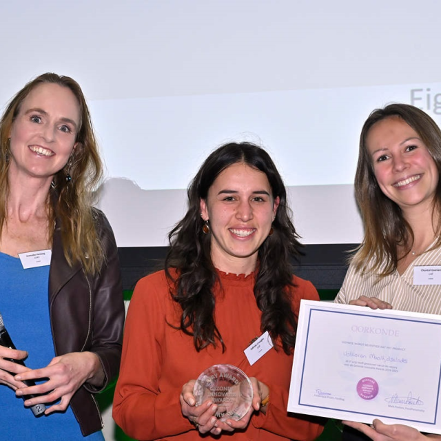 Foto: Van Links naar rechts: Marieke Kerstens, jurylid Gezonde Innovatie Awards. Adinda Croughs en Chantal Goenee Lidl Nederland