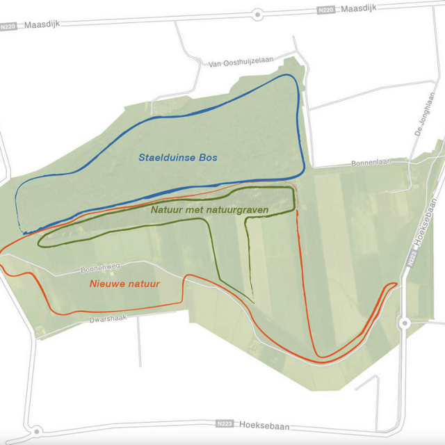 De drie partijen sloegen al in 2016 de handen ineen en zagen mogelijkheden om het cultuurhistorische polderlandschap bij Hoek van Holland te behouden, door 128 hectare grond aan te kopen en in te richten als natuur. Het plan is erop gericht om inheemse vogels, bloemen en insecten terug te brengen in het gebied. Ook komen er wandel- en fietspaden om te genieten van de natuur. Directeur Het Zuid-Hollands Landschap Jos Bisschops: “Met dit plan voegen we 128 hectare nieuwe natuur toe aan een regio die dat hard nodig heeft. Door de uitbreiding van het aangrenzende natuurgebied Staelduinse Bos, dat al in ons beheer is, vergroten we de biodiversiteit aanzienlijk. Samen met de steun van onze donateurs zetten we alles op alles om deze verdubbeling van het natuur- en recreatiegebied te realiseren."