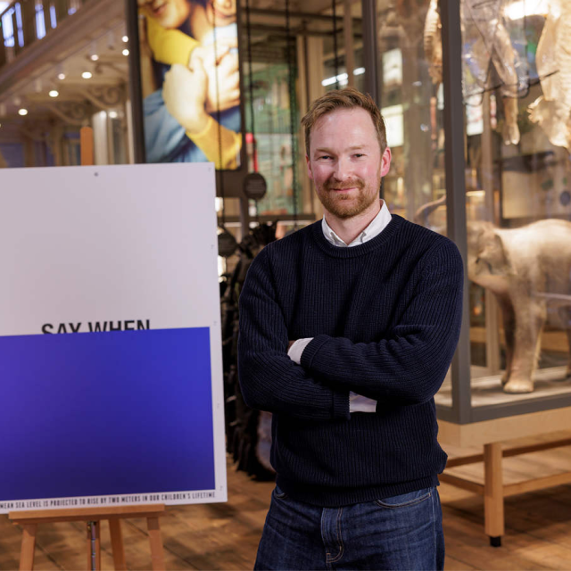 Say When’ is een grafische weergave van optimisme en pessimisme over de toekomst van de beschaving op onze planeet’ zegt de winnaar Liam Houlihan over zijn poster, ‘Want nu de zeespiegel blijft stijgen – waardoor miljarden mensen binnen het leven van onze kinderen dreigen te worden verdreven – is het tijd om in actie te komen.”