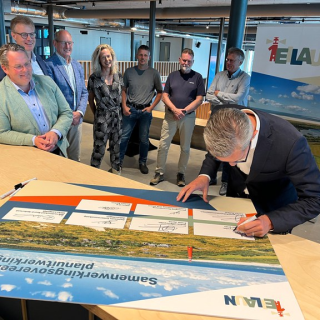 Tijdens de stuurgroepvergadering van 3 juli 2025 ondertekenden Wetterskip Fryslân, gemeente Schiermonnikoog, Rijkswaterstaat Noord-Nederland, Natuurmonumenten, Vereniging Boerenbelang Schiermonnikoog, drinkwaterbedrijf Vitens en de provincie Fryslân een samenwerkingsovereenkomst (SOK) voor de volgende stap in de gebiedsgerichte aanpak Schiermonnikoog; de planuitwerkingsfase dijk-en duinversterking. In deze vergadering zijn ook drie belangrijke plannen goedgekeurd. Naast het integraal waterplan en het projectenboek 1EILAUN (geplande werkzaamheden) is ook het plan van aanpak voor de kust en duinen van Schiermonnikoog besproken en goedgekeurd.