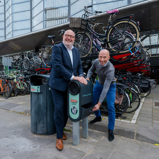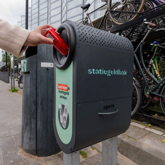 Gisteren is in Rotterdam de pilot met vernieuwde statiegeldbakken officieel van start gegaan. Aan de Stationssingel achter Rotterdam Centraal onthulden wethouder Pascal Lansink-Bastemeijer (Buitenruimte en Mobiliteit) en Jeroen Hillen, directeur van Statiegeld Nederland namens Verpact, samen de eerste vernieuwde statiegeldbak. In totaal zijn er 31 bakken geplaatst in de buurt van reguliere prullenbakken, waarin consumenten hun statiegeldflesjes en –blikjes kunnen achterlaten.