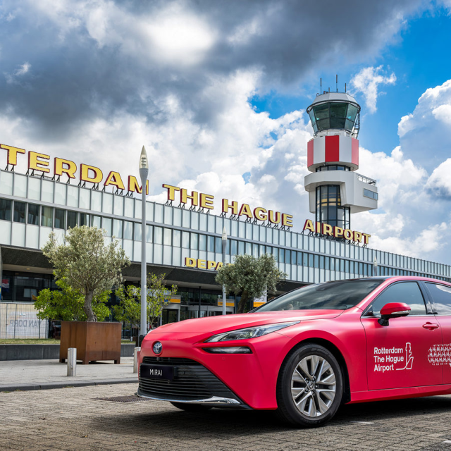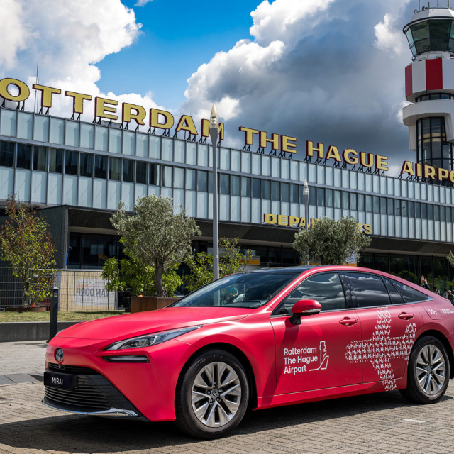 Rotterdam The Hague Airport (RTHA) heeft deze week een nieuwe Toyota Mirai in gebruik genomen. De waterstof-elektrische auto wordt gebruikt als deelauto voor personeel van Rotterdam The Hague Airport. De opvallende rode Toyota Mirai is vanaf deze week te zien op en rond de luchthaven.